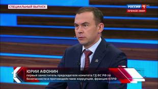 Первый заместитель Председателя ЦК КПРФ Ю. В. Афонин принял участие в программе «60 минут» на телеканале «Россия-1».
