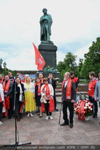 6 июня в Москве, у памятника А.С. Пушкину, коммунисты, комсомольцы, союзники и сторонники партии провели праздничную акцию, посвященную Дню русского языка – Пушкинскому дню России. В торжественном мероприятии принял участие Председатель ЦК КПРФ, Руководитель фракции КПРФ в Государственной Думе Г.А. Зюганов.