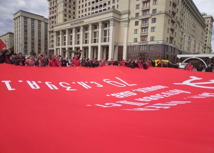 Копия Знамени Победы также была развернута на ступенях у входа в «Музей Победы». Над широкой площадью парка, уже наполненной пришедшими сюда москвичами, разносилось громогласное: «За Россию! За Победу! За нашу Великую Родину!»