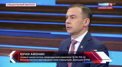 Первый заместитель Председателя ЦК КПРФ Ю. В. Афонин выступил в программе «60 минут» на телеканале «Россия-1».