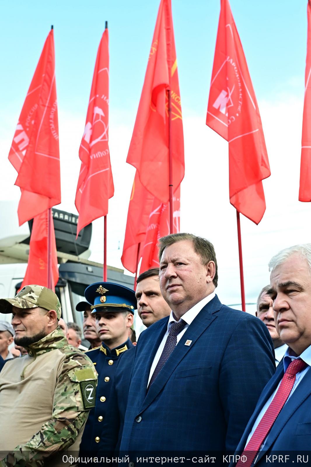 «По линии Компартии России, - продолжил Г.А. Зюганов, - из подмосковного совхоза имени Ленина мы уже отправили на Донбасс 113 конвоев, а это 19 тысяч тонн различных грузов. Все, что необходимо для обеспечения победы, для поддержания граждан, отправляется в этих конвоях. Более того, мы вместе с Кобзоном основали движение «Дети России – детям Донбасса» и в подмосковном Доме отдыха «Снегири» приняли уже 13 тысяч детей. Я специально для них помог построить военно-спортивный лагерь, открытый две недели назад».
