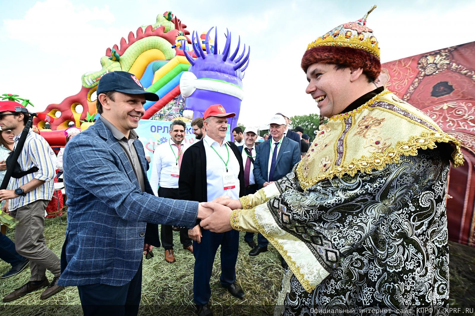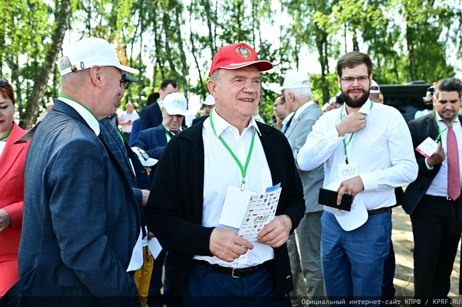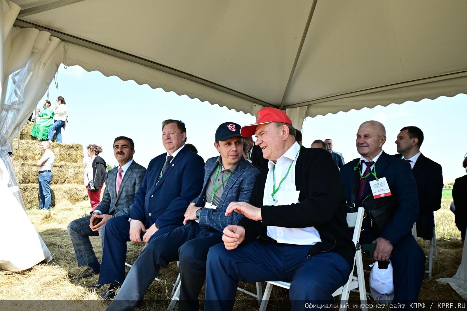 «В первой половине дня уже отработали пять секций форума, - продолжил лидер КПРФ. - Наша секция во главе с моим заместителем академиком Кашиным выезжала в Дубовицкое, где нам были представлены лучшие сорта пшеницы, сои, гороха, уникальная организация сельхозпроизводства. И там мы открыли аграрную неделю Орловской области. Завтра мы проведем здесь большой праздник Русского поля, в котором примут участие около 10 тысяч человек».