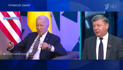 Во второй части программы продолжилось обсуждение итогов саммита НАТО в Вильнюсе. В эфире был показан фрагмент выступления президента США Байдена на встрече с Зеленским. «Плохая новость для вас в том, что мы никуда не денемся. Вы застряли с нами…», – заявил Байден Зеленскому. Комментируя это двусмысленное высказывание, Дмитрий Новиков предложил: «Давайте мы всё-таки вспомним, а что это вообще за тема – Украина в НАТО? Все везде много об этом говорят, но тема всё больше сводится к тому, что у Зеленского есть некая амбиция и он хочет её реализовать, а реализовать не получается. На самом деле, конечно, дело не просто в амбициях Зеленского, в его желаниях и стремлениях. Украина в НАТО – это означает, что война на украинском театре ведётся уже не просто силами украинцев при поддержке стран НАТО. Это уже открытая, прямая, явная война между Россией и блоком. Это принципиальное изменение всей мировой ситуации”.