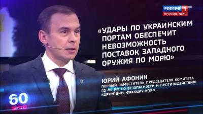 Первый заместитель Председателя ЦК КПРФ Ю. В. Афонин выступил в программе «60 минут» на телеканале «Россия-1».