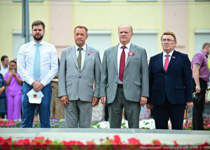 В полдень Председатель ЦК КПРФ, Руководитель фракции КПРФ в Государственной Думе ФС РФ Г.А. Зюганов принял участие в торжественной церемонии водружения Красного знамени с надписью «За Родину, за Сталина» на доме №5 по площади мира города Орла, напротив сквера Танкистов. Лидер российских коммунистов также возложил цветы к Вечному Огню и к Братской могиле воинов, освободивших город Орел в 1943 году.