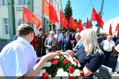 5 августа Председатель ЦК КПРФ, Руководитель фракции КПРФ в Государственной Думе ФС РФ Г.А. Зюганов принял участие в торжественной церемонии водружения красного знамени с надписью «За Родину, за Сталина» на доме №5 по площади мира города Орла, напротив сквера Танкистов. Лидер российских коммунистов также возложил цветы к Вечному Огню и к Братской могиле воинов, освободивших город Орел в 1943 году.