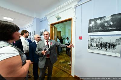 Утром 5 августа делегация КПРФ во главе с Г.А. Зюгановым посетила Орловский краеведческий музей, где состоялось открытие фотовыставки «От Курска и Орла… К 80-летию освобождения г. Орла и Орловской области от немецко-фашистских захватчиков». На этой выставке представлены уникальные фотографии корреспондентов Совинформбюро.