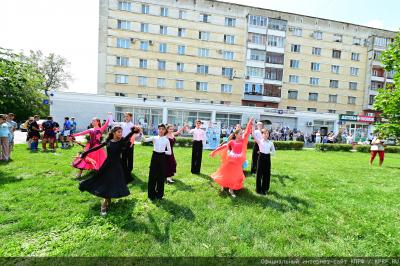 До начала мероприятия в фойе театра работали тематические выставки и выступали творческие коллективы области.