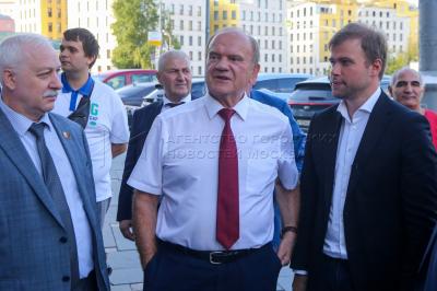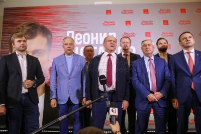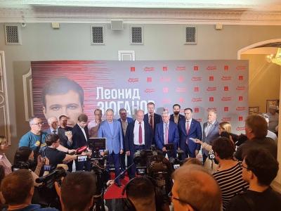 До начала презентации на пресс-подходе выступили Председатель ЦК КПРФ, Руководитель фракции КПРФ в Госдуме Г.А. Зюганов и Л.А. Зюганов.