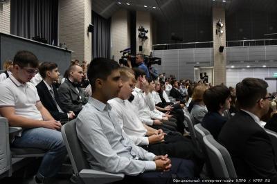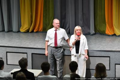 Лидер КПРФ поблагодарил за большой труд педагогический коллектив школы и еще раз поздравил старшеклассников с началом нового учебного года.