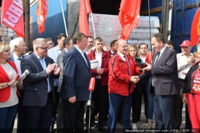 В отправке гуманитарного груза приняли активное участие Председатель ЦК КПРФ Геннадий Зюганов, заместитель Председателя ЦК КПРФ Владимир Кашин, депутаты Государственной Думы - Первый секретарь МК КПРФ Николай Васильев, Казбек Тайсаев, Александр Ющенко. А также депутаты Мособлдумы: секретарь МК КПРФ, заместитель Председателя Мособлдумы, руководитель фракции КПРФ – Александр Наумов, а также Елена Мокринская, Татьяна Никитас. Приняли участие в отправке и депутаты Мосгордумы, во главе с руководителем фракции КПРФ Николаем Зубрилиным. Большой вклад внесли в формирование гуманитарного конвоя коммунисты Подмосковья, секретари МК КПРФ - Василий Стасюк, сотрудники МК КПРФ - Константин Баранов, Кирилл Имеев, референт руководителя фракции МК КПРФ в Мособлдуме А.А. Наумова - Александр Федоренко. Подключились активно и коммунисты Москвы, Твери и Тулы, директор «Совхоза им. Ленина» Павел Грудинин, Московское областное отделение «ВЖС - Надежда России» под руководством Марины Пушкиной и другие товарищи.