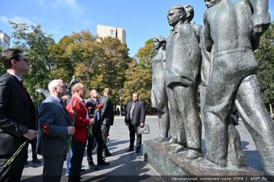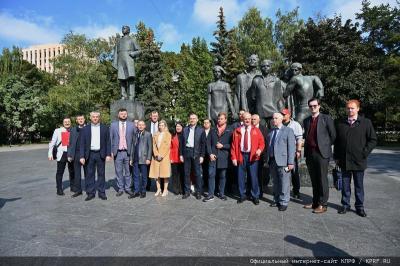 Затем лидер КПРФ возложил цветы к памятнику-мемориалу выдающемуся советскому писателю А.А. Фадееву на Миусской площади столицы.