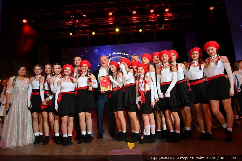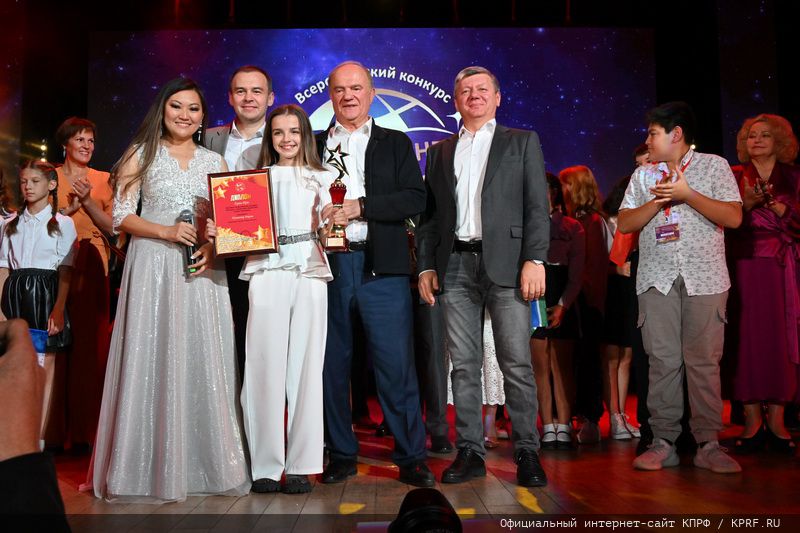 Перед началом выступления Председатель ЦК КПРФ Г. А. Зюганов, первый заместитель Председателя ЦК КПРФ Ю.В. Афонин, заместитель Председателя ЦК КПРФ Д.Г.Новиков, секретарь ЦК КПРФ М.В. Дробот, секретарь ЦК КПРФ, первый секретарь ЦК ЛКСМ РФ В.П. Исаков, депутат Госдумы от КПРФ, Председатель Комитета Государственной Думы по вопросам семьи, женщин и детей Н. А. Останина, депутат Госдумы от КПРФ, Председатель Комитета Государственной Думы по вопросам собственности, земельным и имущественным отношениям С.А. Гаврилов, депутат Госдумы от КПРФ И.А. Филатова и член ЦК КПРФ, сенатор РФ А.М. Гибатдинов сфотографировались с юными участниками конкурса, их педагогами и родителями.