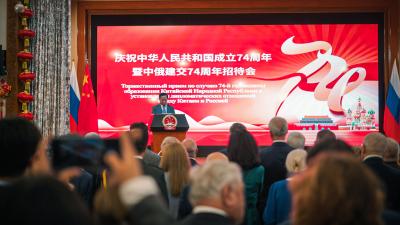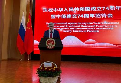 28 сентября в Посольстве КНР в Москве состоялся торжественный Прием по случаю 74-й годовщины образования Китайской Народной Республики и установления дипломатических отношений между Китаем и Россией. После речи Чрезвычайного и Полномочного Посла КНР в Российской Федерации Чжан Ханьхуэя с речью главного гостя с российской стороны выступил Первый заместитель Председателя Государственной Думы ФС РФ, Первый заместитель Председателя ЦК КПРФ, Председатель Общества российско-китайской дружбы Иван Мельников.