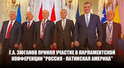В пятницу, 29 сентября, в Москве открылась Первая международная парламентская конференция "Россия - Латинская Америка". В мероприятии принял участие Председатель ЦК КПРФ Г.А. Зюганов. Также КПРФ представляли: Первый заместитель Председателя ЦК КПРФ И.И. Мельников, член Президиума ЦК КПРФ Г.П. Камнев, секретарь ЦК КПРФ А.А. Ющенко.