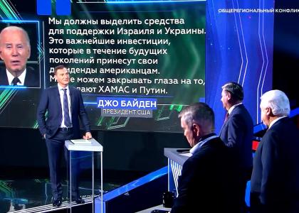 Начать беседу в студии ведущий Роман Бабаян предложил с оценки высказывания Джо Байдена, поставившего на одну доску палестинское движение ХАМАС и Россию. По его словам, они вместе угрожают демократии, и США обязаны ответить на этот вызов. Ведущий задал вопрос, как должны реагировать на подобные выпады в Москве.