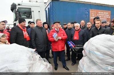 В Поволжье развернулась активная работа по сбору и отправке гуманитарного груза. В Ульяновске работает наш губернатор Алексей Русских, в каждом конвое есть вклад ульяновцев. Также благодарю за активную работу Северный Кавказ, депутатов-коммунистов - Иван Казанков (совхоз «Звениговский») всегда поставляет тушенку, Михаил Горбунов - руководитель подмосковного крупного предприятия предоставляет тушенку и мясные изделия. Говорим спасибо и ряду специализированных структур, кто отправляет бакалею. В каждом конвое неизменно отправляются вещи и медикаменты. Чеховский ГК КПРФ, Серпуховский ГК КПРФ, Виктор Таранин (АО «Дашковка»), Павел Грудинин (ЗАО «Совхоз имени Ленина») постоянно отправляют овощи.