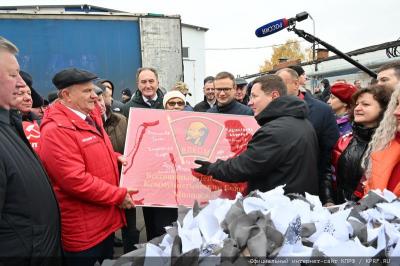 Особенно хочу отметить товарищей из Подмосковья. Каждый конвой Московская областная организация КПРФ в полном составе представляет груз, который уйдет на наши новые территории. Вы все видели сегодняшнюю выкладку. Почти все городские округа Подмосковья представили свой вклад в этот груз. Также благодарю товарищей из Тулы, Твери, Воронежа, Ставрополья. Они также принимают активное участие во всех конвоях. Но, к сожалению, гуманитарных грузов все равно недостаточно.