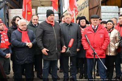 На митинге, во время отправки гуманитарного конвоя выступил заместитель Председателя ЦК КПРФ, Председатель Комитета Госдумы по аграрным вопросам, академик РАН - Владимир Кашин: