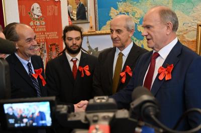 7 ноября состоялась встреча Председателя ЦК КПРФ, руководителя фракции КПРФ в Государственной Думе Г.А. Зюганова с прибывшей в Москву делегацией Итальянской коммунистической партии во главе с Генеральным секретарем партии Мауро Альборези для участия в мероприятиях, проводимых КПРФ в честь 106-й годовщины Великой Октябрьской социалистической революции.