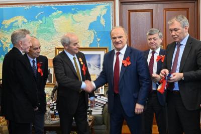 Во встрече приняли участие заместители Председателя ЦК КПРФ Л.И. Калашников и Д.Г. Новиков, депутат Государственной Думы А.А. Ющенко, заведующий Международным отделом ЦК КПРФ М.А. Забиров.