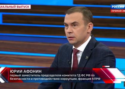 Первый заместитель Председателя ЦК КПРФ Ю.В. Афонин принял участие в программе «60 минут» на телеканале «Россия-1».