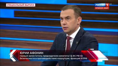 Первый заместитель Председателя ЦК КПРФ Ю.В. Афонин принял участие в программе «60 минут» на телеканале «Россия-1».