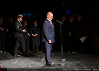 «Победы к нам приходят, когда мы опираемся на тех, кто ранее вдохновлял на другие победы: кто строил, совершал открытия, кто показывал пример. Те награды, которые вы видите, они представлены не только ему лично, но и всему театру, всей русской интеллигенции, всем, кто любит нашу страну», - сказал лидер КПРФ.