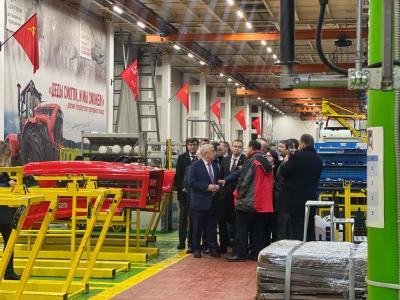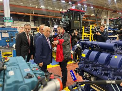 Коммунистов встретили с хлебом-солью. Гостей завода познакомили с новейшими образцами сельскохозяйственной, строительной и дорожной техники, ее характеристиками, а также рассказали о работе легендарного предприятия, имеющего двухсотлетнюю историю.