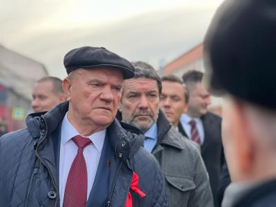 Г.А. Зюганов поздравил рабочих с 80-летием полного снятия блокады Ленинграда и отметил роль Кировского завода в обороне страны от немецко-фашистских захватчиков. Также он оценил успехи предприятия, которых удалось добиться за последнее время, и рассказал о роли КПРФ в его возрождении.