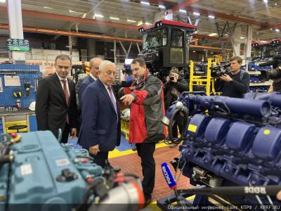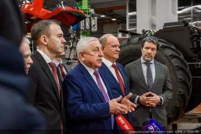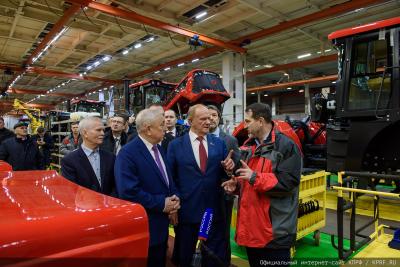 Коммунистов встретили с хлебом-солью. Гостей завода познакомили с новейшими образцами сельскохозяйственной, строительной и дорожной техники, ее характеристиками, а также рассказали о работе легендарного предприятия, имеющего двухсотлетнюю историю.