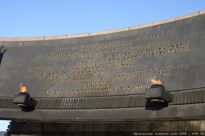 Затем Делегация ЦК КПРФ направилась к Монументу Героическим защитникам Ленинграда.