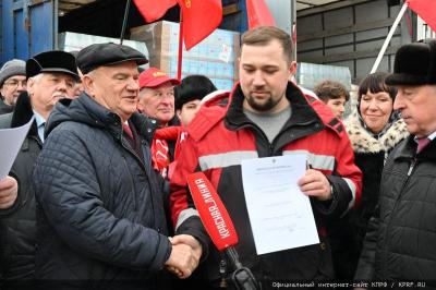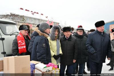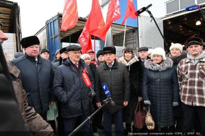 - Уважаемые товарищи! Сейчас, мы с вами посмотрели те грузы, которые подготовили региональные партийные организации, конкретное население, люди, ученики, школы. Это подтверждение тому, что все работают для фронта, для Победы. Большее спасибо всем тем, кто занимается и регулирует сбор и отправку гуманитарной помощи. В данном случае это заместитель Председателя ЦК КПРФ, руководитель Штаба протестных действий Владимир Иванович Кашин.
