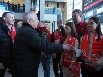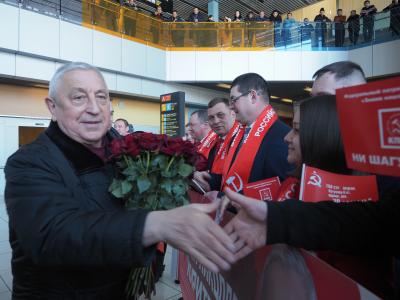 В здании аэровокзала собрались представители местных отделений КПРФ из муниципалитетов Среднего Урала, комсомольцы и участники движения «Дети войны». Партийные активисты встретили Николая Харитонова и Юрия Афонина песней об Урале и преподнесли каравай уральского хлеба.