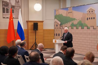 Дорогие друзья! В наступившем году Дракона, который символизирует стремление к развитию и прогрессу, мы отмечаем 75-летие образования КНР, установления дипломатических отношений между нашими странами и создания Общества китайско-российской дружбы. Ушедший 2023 год вписал важные страницы в летопись наших отношений: успешные визиты лидеров наших стран Владимира Путина и Си Цзиньпина, эффективные контакты по межправительственной, межпарламентской, министерской и партийной линиям.