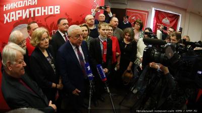 Выступая следующим, кандидат на должность Президента РФ Н.М. Харитонов поблагодарил собравшихся и поздравил всех женщин с приближающимся Международным женским днем 8 марта.
