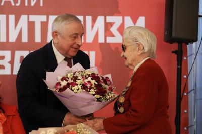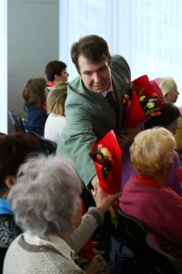 Затем Н.М. Харитонов поздравил ветерана Великой Отечественной войны, Председателя совета ветеранов 95-й гвардейской дивизии Марию Михайловну Рохлину.