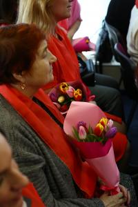 После чего всем присутствующим женщинам были вручены букеты цветов.