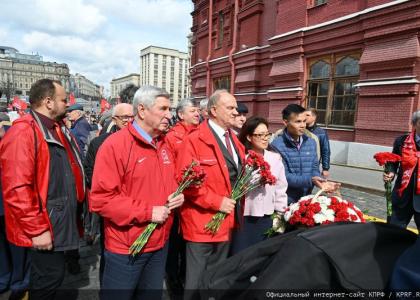 22 апреля исполнилось 154 года со Дня рождения В.И. Ленина. Эту дату коммунисты, комсомольцы, союзники и сторонники партии отметили возложением цветов к Мавзолею Вождя мирового пролетариата. Колонну под красными флагами возглавил Председатель ЦК КПРФ Г.А. Зюганов. По окончании торжественной церемонии он выступил перед журналистами.