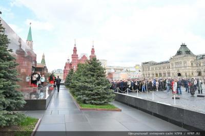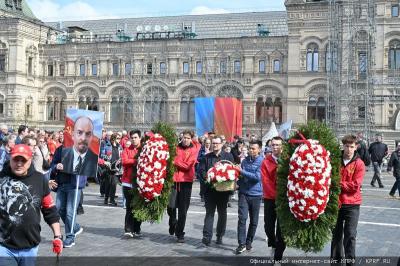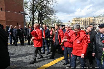 22 апреля исполнилось 154 года со Дня рождения В.И. Ленина. Эту дату коммунисты, комсомольцы, союзники и сторонники партии отметили возложением цветов к Мавзолею Вождя мирового пролетариата. Колонну под красными флагами возглавил Председатель ЦК КПРФ Г.А. Зюганов. По окончании торжественной церемонии он выступил перед журналистами.