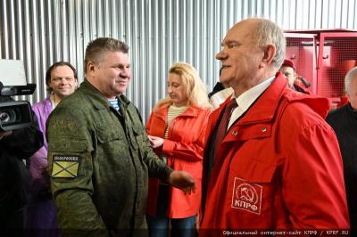 - Уважаемые товарищи! Конечно, прежде всего слова благодарности выражаем всем нашим общественным организациям: «Дети войны», «Надежда России», Ленинский комсомол, Союз советских офицеров, нашим партийным комитетам, которые все эти десять лет активно участвуют в отправке гуманитарных конвоев. В последних конвоях активное участие принимает Фонд ветеранов комсомола. Это бывшие освобожденные партийные и комсомольские работники. Они активно работают в школах. Сегодня они отправляют 300 саженцев роз для Донецкого розария, книги в батальонные библиотеки и многое другое. От всех наших общественных и партийных организаций, которые активно собирают гуманитарную помощь, я поздравляю тех, кто сейчас находится в окопах, жителей наших четырех новых регионов с наступающим праздником международной солидарности трудящихся и Днем Победы - 9 мая. Желаю им здоровья. Пусть они знают, что мы с ними и мы обязательно победим! Наше дело правое - Победа будет за нами!