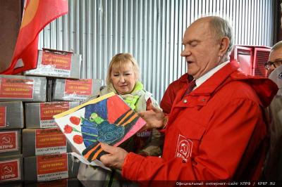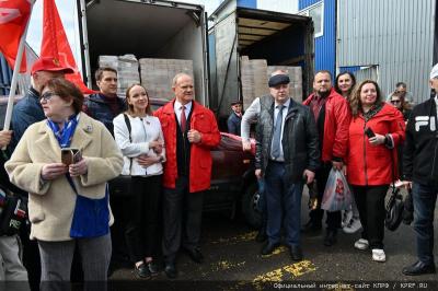 В отправке гуманитарного груза приняли активное участие Председатель ЦК КПРФ Геннадий Зюганов, заместитель Председателя ЦК КПРФ Владимир Кашин, депутаты Государственной Думы: Первый секретарь МК КПРФ Николай Васильев, Казбек Тайсаев. А также депутаты Мособлдумы: заместитель Председателя Мособлдумы - руководитель фракции КПРФ, секретарем МК КПРФ – Александр Наумов, Председатель Комитета по местному самоуправлению Мособлдумы – Владимир Барсуков, депутаты-коммунисты: Елена Мокринская, Татьяна Никитас. Также приняли участие в отправке и депутаты Мосгордумы, во главе с руководителем фракции КПРФ Николаем Зубрилиным. Большой вклад внесли в формирование гуманитарного конвоя коммунисты Подмосковья, секретари МК КПРФ - Василий Стасюк, Сергей Стрельцов, второй секретарь МК ЛКСМ РФ, сотрудник МК КПРФ - Артем Васильев, сотрудник МК КПРФ - Константин Баранов, пресс-служба МК КПРФ: руководитель - Евгения Наумова, администратор сайта МК КПРФ - Ирина Снеткова, руководитель аппарата фракции КПРФ в Мособлдуме – Константин Елисеев, референт руководителя фракции КПРФ в Мособлдуме Александр Федоренко. Подключились активно и коммунисты Москвы, Владимира, Калуги, Нижнего Новгорода, Пскова, Рязани, Твери, Тулы и Ярославля, директор «Совхоза им. Ленина» Павел Грудинин и другие товарищи.