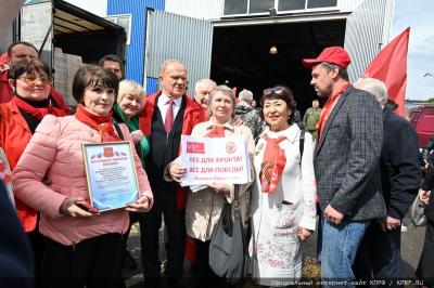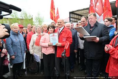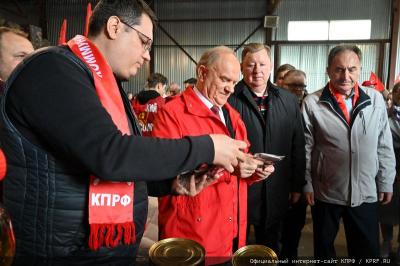 После окончания митинга, лидер КПРФ Геннадий Зюганов вручил комсомольские и партийные билеты новым товарищам и Благодарственные письма - М.Г. Пушкиной, Л.П. Мошкиной, В.А. Камневой и С.П. Медведеву.