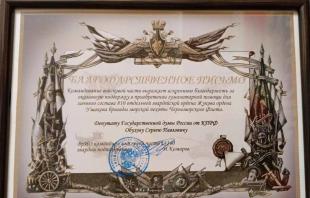 В ответ мы часто получаем слова благодарности от наших героических военнослужащих. Недавно депутат Государственной Думы РФ Сергей Павлович Обухов получил благодарственное письмо от командования 810-й отдельной гвардейской ордена Жукова, ордена Ушакова бригады морской пехоты Черноморского флота. С.П. Обухов откликнулся на просьбу наших бойцов и в результате его действенного содействия личный состав бригады получил необходимую ему помощь, в том числе в виде высокотехнологичной продукции, в частности квадрокоптеры, пикапы, тепловизоры и др.