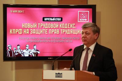 16 мая в Государственной Думе состоялся «круглый стол» на тему «Новый Трудовой кодекс. КПРФ на защите прав трудящихся». В обсуждении ключевого партийного законопроекта приняли участие первый заместитель Председателя ЦК КПРФ Юрий Афонин, заместитель Председателя ЦК КПРФ Дмитрий Новиков и секретарь ЦК КПРФ Георгий Камнев, представители федеральных исполнительных органов власти, а также общественных и профсоюзных организаций.