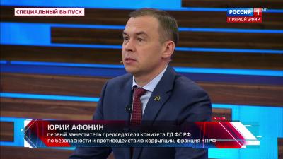 Первый заместитель Председателя ЦК КПРФ Ю. В. Афонин выступил в программе «60 минут» на телеканале «Россия-1».