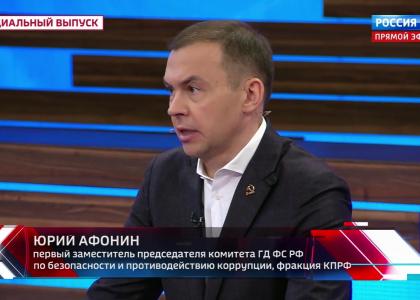 Первый заместитель Председателя ЦК КПРФ Ю. В. Афонин принял участие в программе «60 минут» на телеканале «Россия-1».