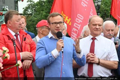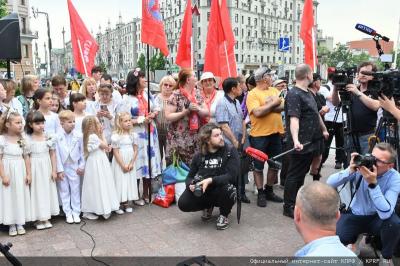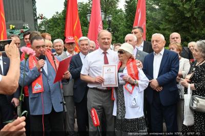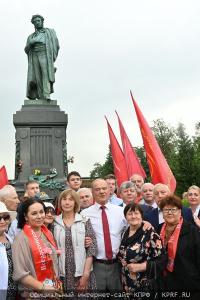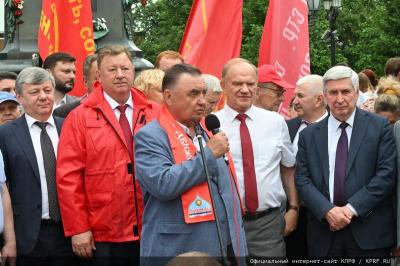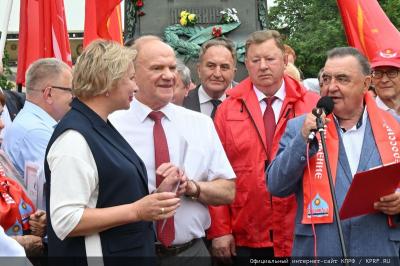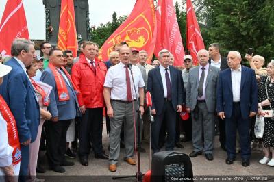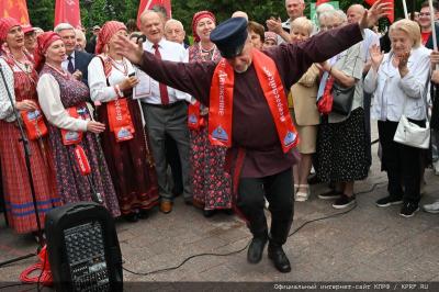 Открыл и вел праздничный митинг заместитель Председателя ЦК КПРФ В.И. Кашин. Он отметил, что сегодня Запад развязал войну против нашей культуры. В то же время он напомнил о непростой борьбе Компартии за сбережение русского языка, причем заметную роль в ней сыграли представители национальных республик.