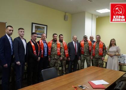 На мероприятии также присутствовали коммунисты-военнослужащие: первый секретарь Донецкого городского комитета КПРФ С. Семичасный, секретарь по идеологии В. Попков, руководитель направления и развития физической культуры и спорта Д. Соболевский.