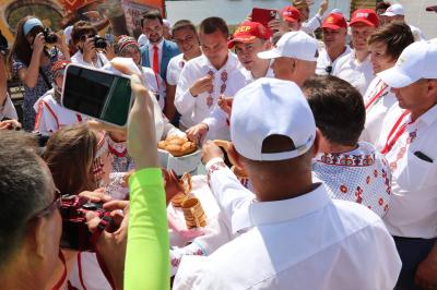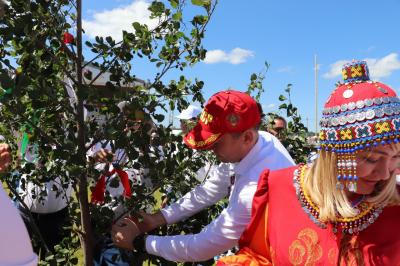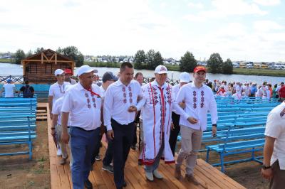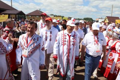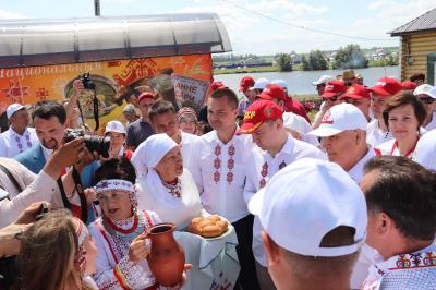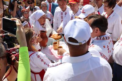 Кульминацией праздника стали приветствия, произнесенные почетными гостями праздника с главной сцены. Перед участниками праздника выступили: заместитель председателя Госсовета Республики Татарстан Юрий Камалтынов, сенатор Александр Терентьев, первый заместитель министра культуры Татарстана Юлия Адгамова, глава Алькеевского района Александр Никошин и другие официальные лица.